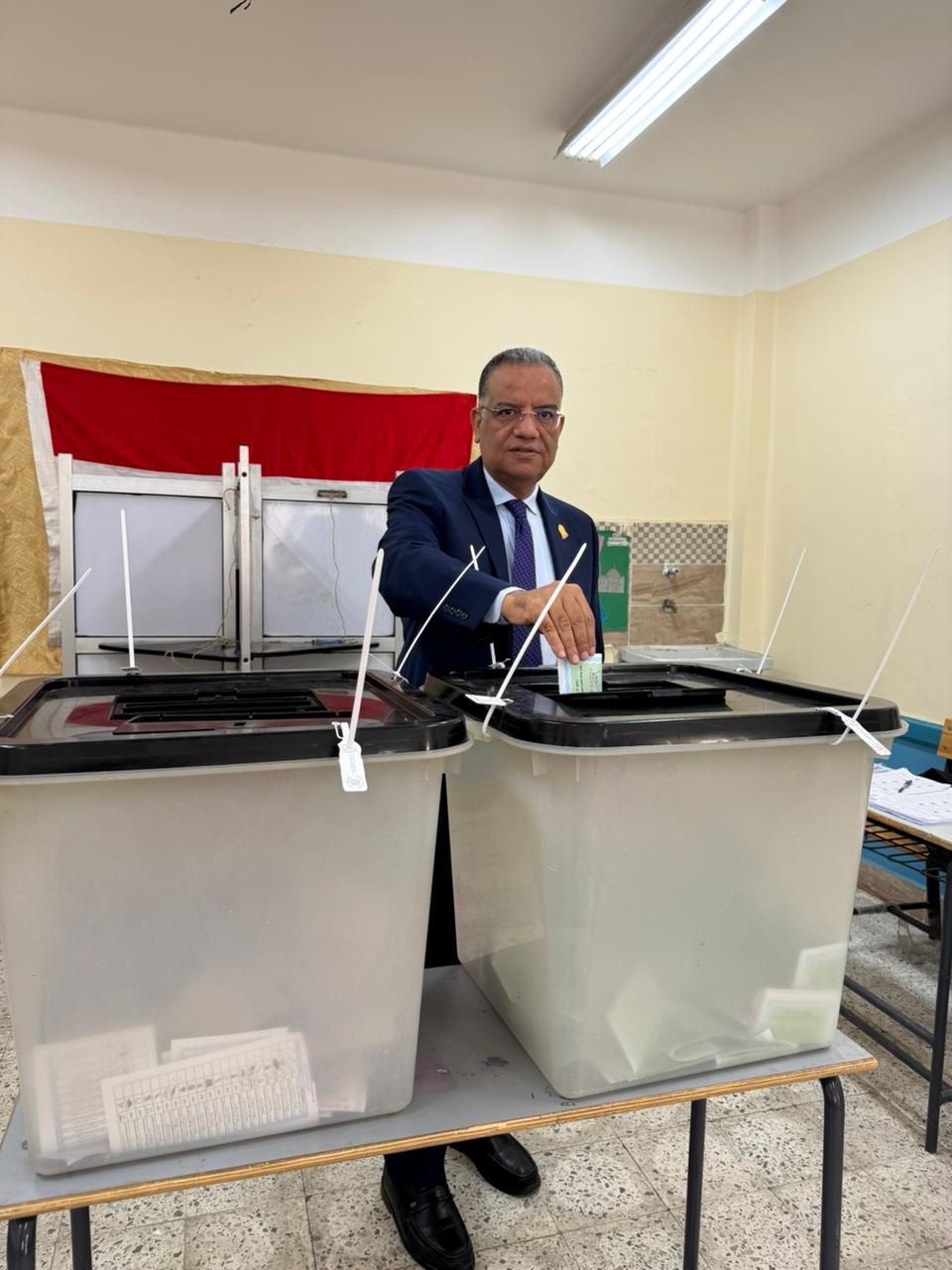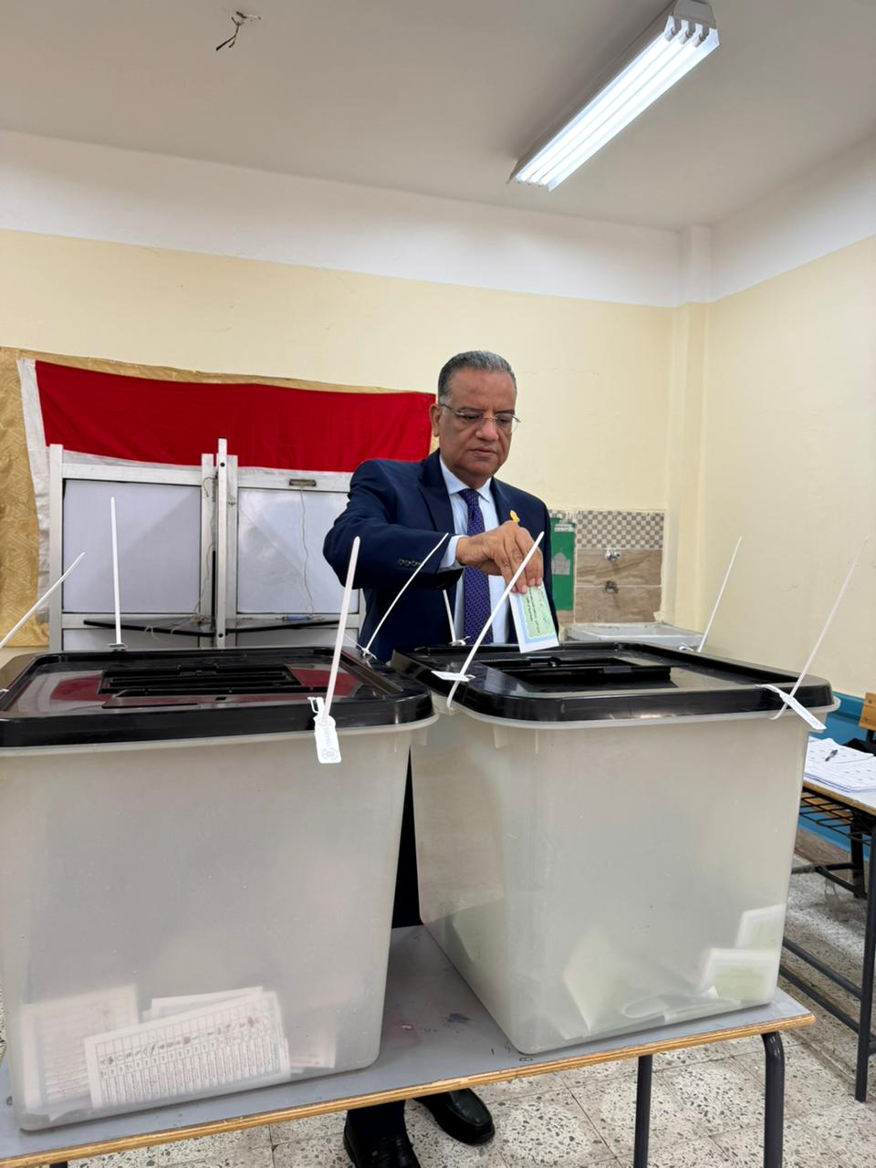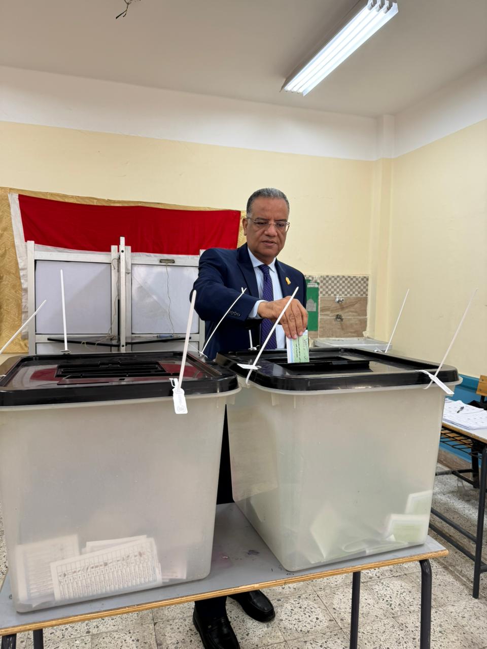 بمدرسة الطبري الثانوية بمصر الجديدة، مؤكدًا على ثقته في أن المصريين سيشاركون بكثافة في هذا الاستحقاق الدستوري المهم، للتعبير عن إرادتهم الحرة في اختيار من يمثلهم، والحفاظ على ما تحقق من إنجازات وطنية لصالح الدولة المصرية.