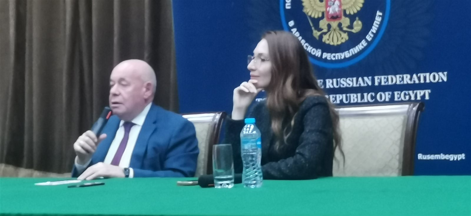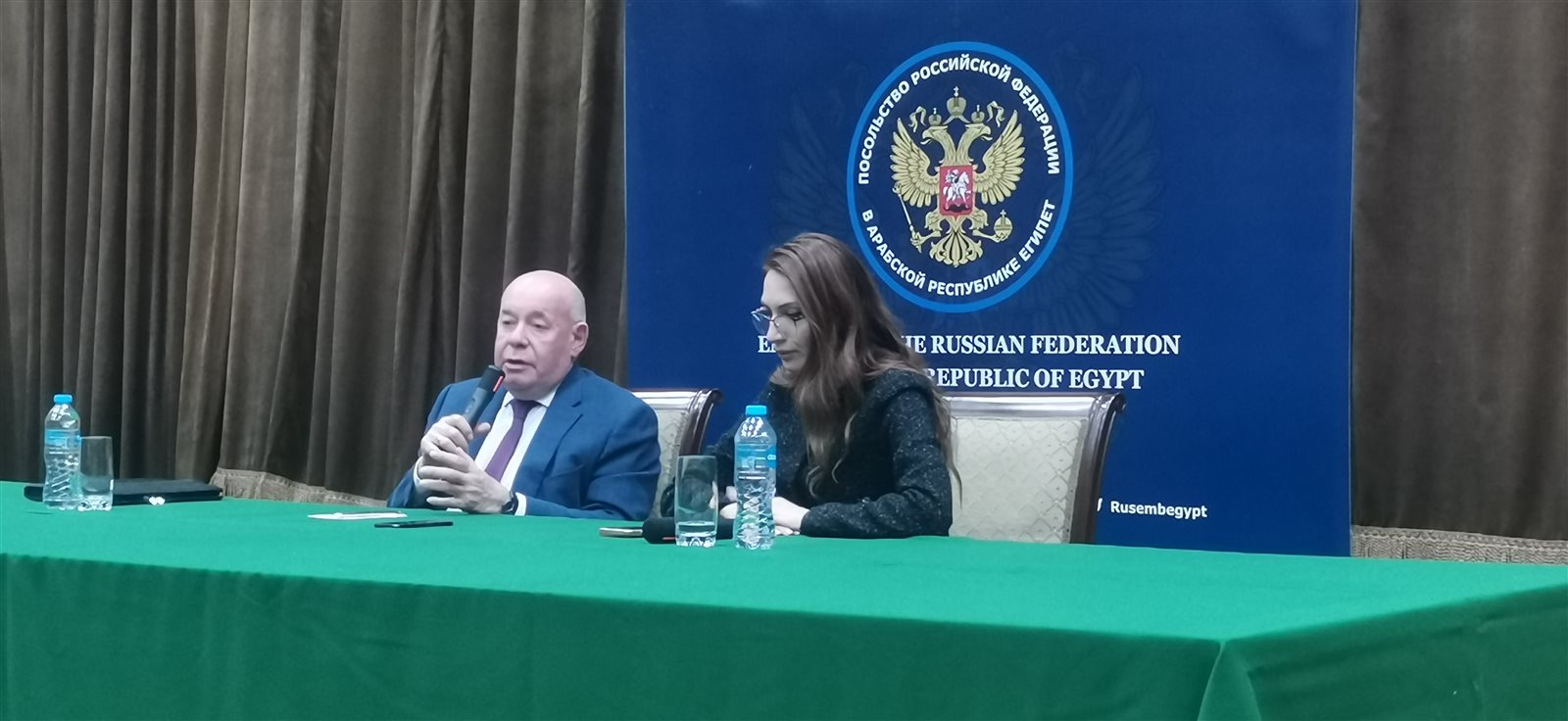 وعقد الممثل الخاص للرئيس الروسي للشؤون الثقافية، السفير ميخائيل شفودكوي مؤتمر صحفي في السفارة الروسية، استعرض خلالها نتائج زيارته إلى مصر، وناقش العديد من القضايا والملفات ذات الاهتمام المشترك بين البلدين.