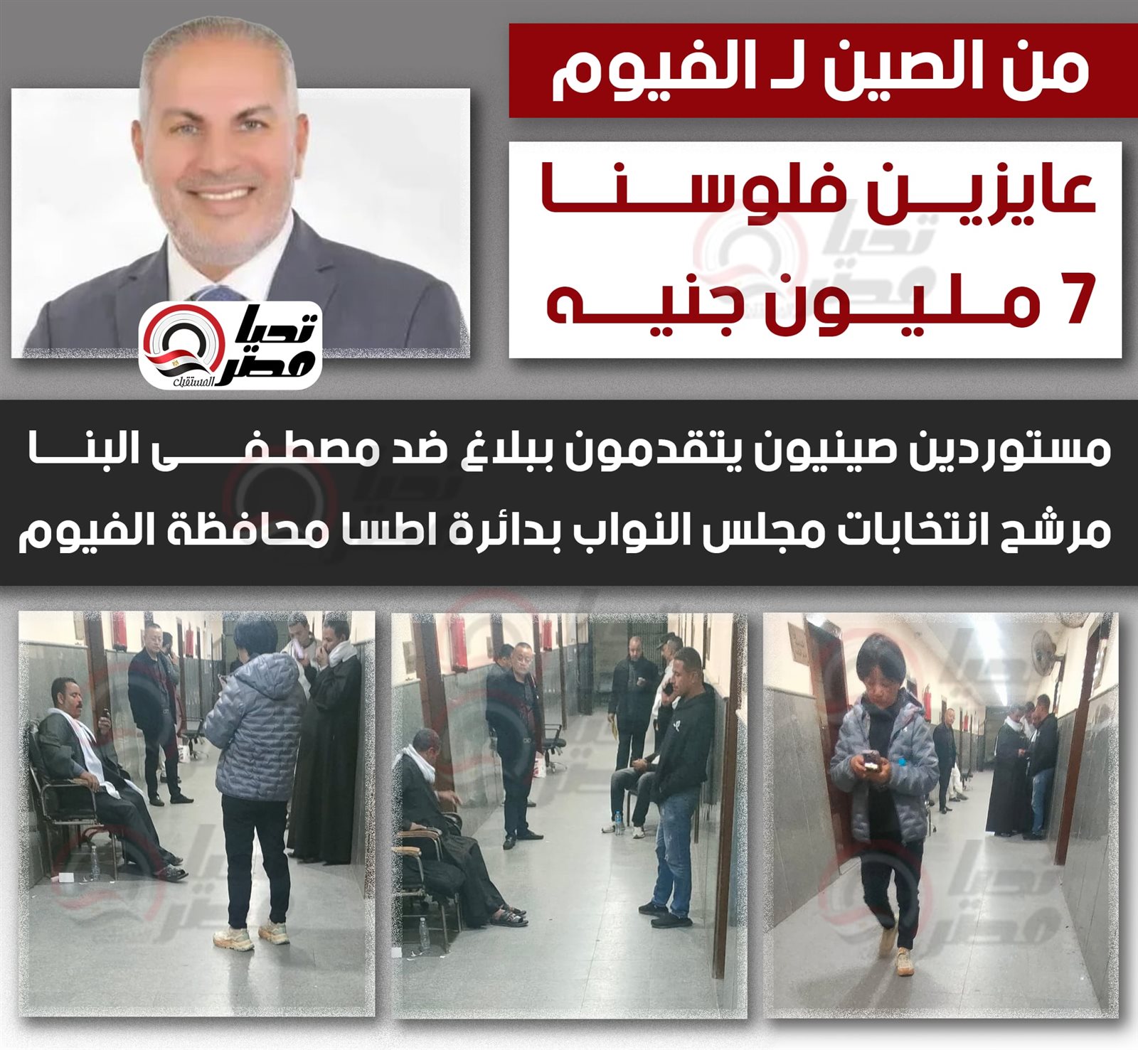 من الصين لـ الفيوم: «عايزين فلوسنا ٧ مليون جنيه»:..مستوردون صينيون يتقدمون ببلاغ ضد مصطفى البنا مرشح انتخابات مجلس النواب بدائرة اطسا محافظة الفيوم