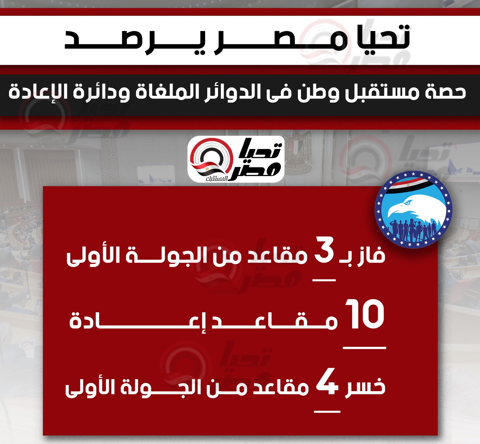 تحيا مصر يرصد حصة مستقبل وطن فى الدوائر الملغاة ودائرة الإعادة