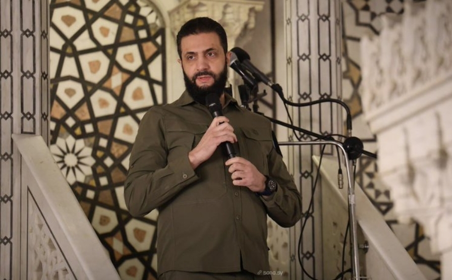 وخلال خطاب أدلى به الشرع في الجامع الأموي بدمشق، دعا السوريين إلى طاعته وقال:" أيها السوريون أطيعوني ما أطعت الله فيكم، فوالله لن يقف في وجهنا أي أحد مهما كبر أو عظم، ولن تقف في وجهنا العقبات، وسنواجه جميعا كل التحديات بإذن الله".