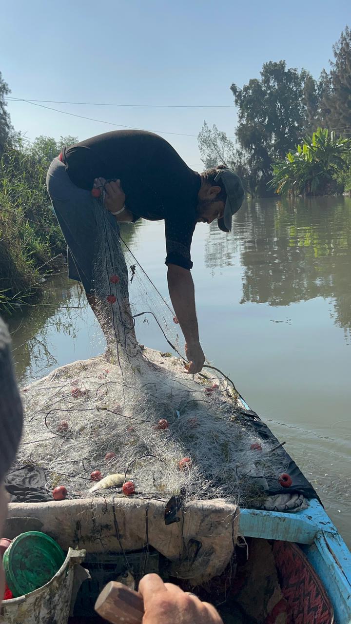 " المهنة اتغيّرت 180 درجة عن الأول.. زمان كنا بنطلع الفجر ونرجع قبل الشمس ما تظهر والشباك مليانة سمك. دلوقتي، بسبب عوامل الجو، بنطلع ومش عارفين هنرجع بسمك ولا لأ، بس ملناش غير ربنا "