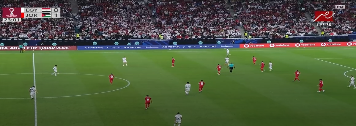 بدأت مباراة منتخب مصر والأردن في كأس العرب 2025 بضغط قوي من جانب منتخب الأردن بحثا عن تسجيل الهدف الأول في المباراة وكان هناك تراجع كبير من جانب منتخب مصر للدفاع.