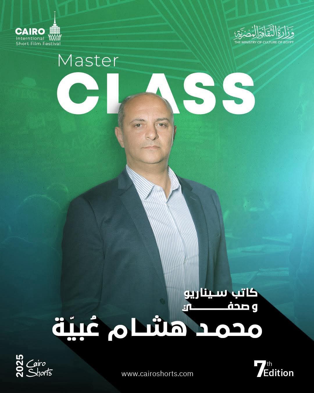 أعلن مهرجان القاهرة الدولي للفيلم القصير عن تنظيم ماستر كلاس بعنوان "كتابة الفيلم القصير استنادا إلى التحقيقات الصحفية والأبحاث العلمية"، يقدمه الكاتب الصحفي وكاتب السيناريو محمد هشام عبية، وذلك يوم الأربعاء 17 ديسمبر في تمام الساعة السادسة مساء بقاعة سينما الحضارة بدار الأوبرا المصرية.