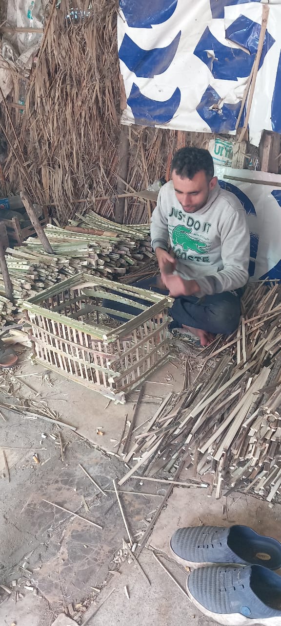 "الأول كنت بشتري كميات كبيرة من أقفاص الجريد وتتباع فورًا دلوقتي بعد البلاستيك الشغل وقف خالص وإحنا عايشين على أمل يرجع الحال زي الأول لإنه مصدر رزقنا الوحيد ."