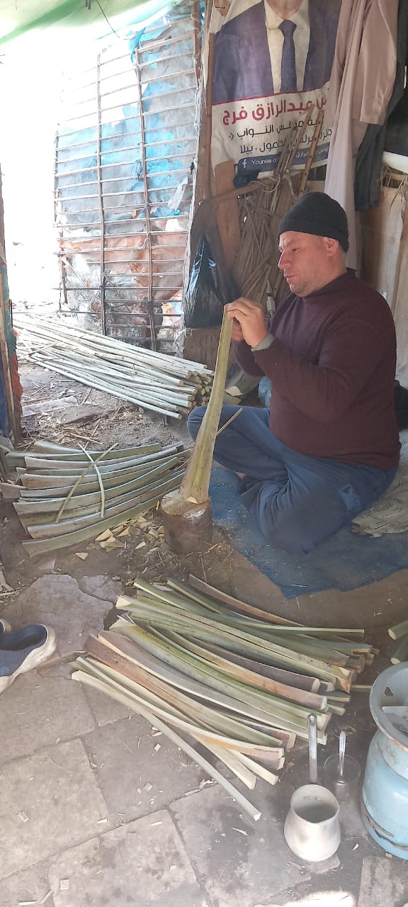 قبل أن تشرق الشمس يخرج حمادة الصعيدي أحد أبناء مدينة بلطيم إلى ورشته الصغيرة التي يقتات منها منذ سنوات طويلة حيث يصنع أقفاص الفاكهة والخضروات من شجر الجريد مهنة ورثها عن آبائه لكنها تتراجع يومًا بعد يوم أمام الانتشار الواسع للأقفاص البلاستيكية الحديثة