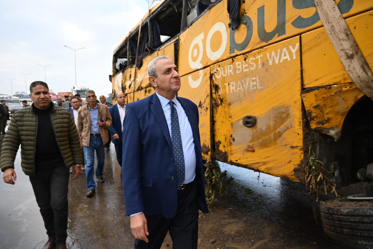 محافظ الغربية يقطع جولته بالمحلة الكبرى ويتوجه إلى موقع حادث انق لاب أتوبيس على طريق دفرة كفر الزيات الحر