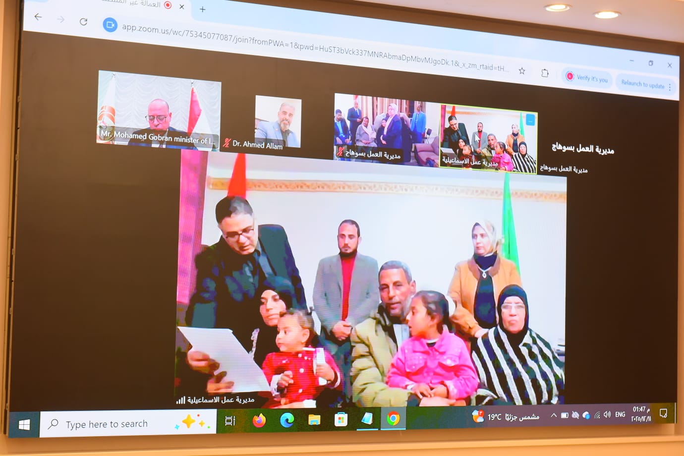 شهد وزير العمل محمد جبران، اليوم،عن طريق "الفيديو كونفرانس"، قيام مديريات العمل بتسليم الإعانات والمستحقات المالية لأسر ضحايا ومصابي العمالة غير المنتظمة في ثلاث محافظات، وذلك من الحساب المركزي للعمالة غير المنتظمة، في إطار دور الوزارة في تقديم الرعاية الاجتماعية ودعم الأسر المتضررة من الحوادث الطارئة.
