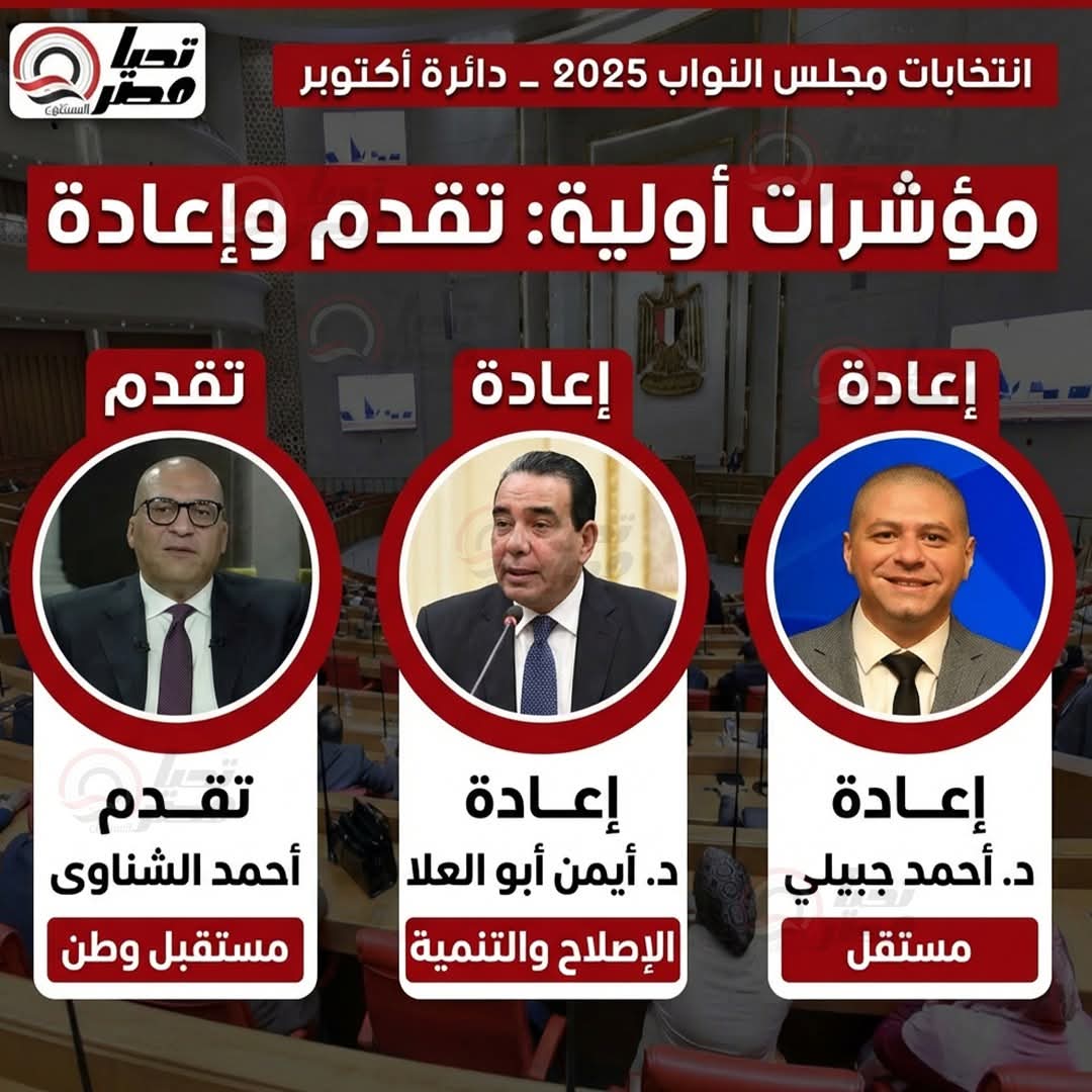 أبو العلا وجبيلى في جولة الإعادة لانتخابات النواب للمرة الثانية ..وتقدم مرشح مستقبل وطن