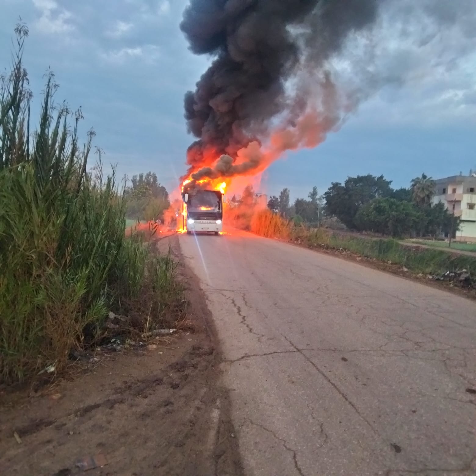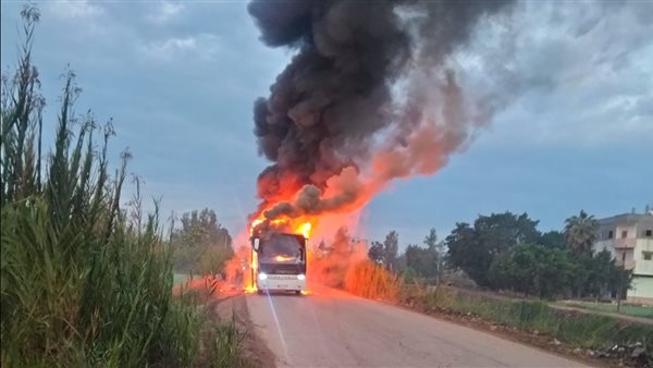 الأتوبيس بقى صفيح.. حريق يلتهم أتوبيس على طريق كفر الشيخ - سيدي سالم