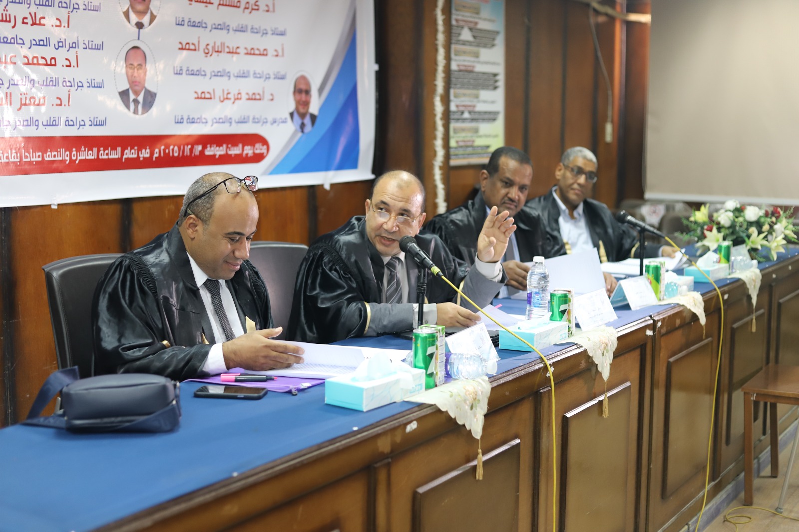 جرت المناقشة بحضور الدكتور أحمد عكاوي رئيس جامعة قنا، والدكتور محمود خضاري نائب رئيس جامعة جنوب الوادي الأسبق، إلى جانب نخبة من أساتذة جراحة القلب والصدر وأمراض الصدر، في أجواء علمية متميزة تعكس دعم الجامعة للبحث العلمي والتطوير الطبي.