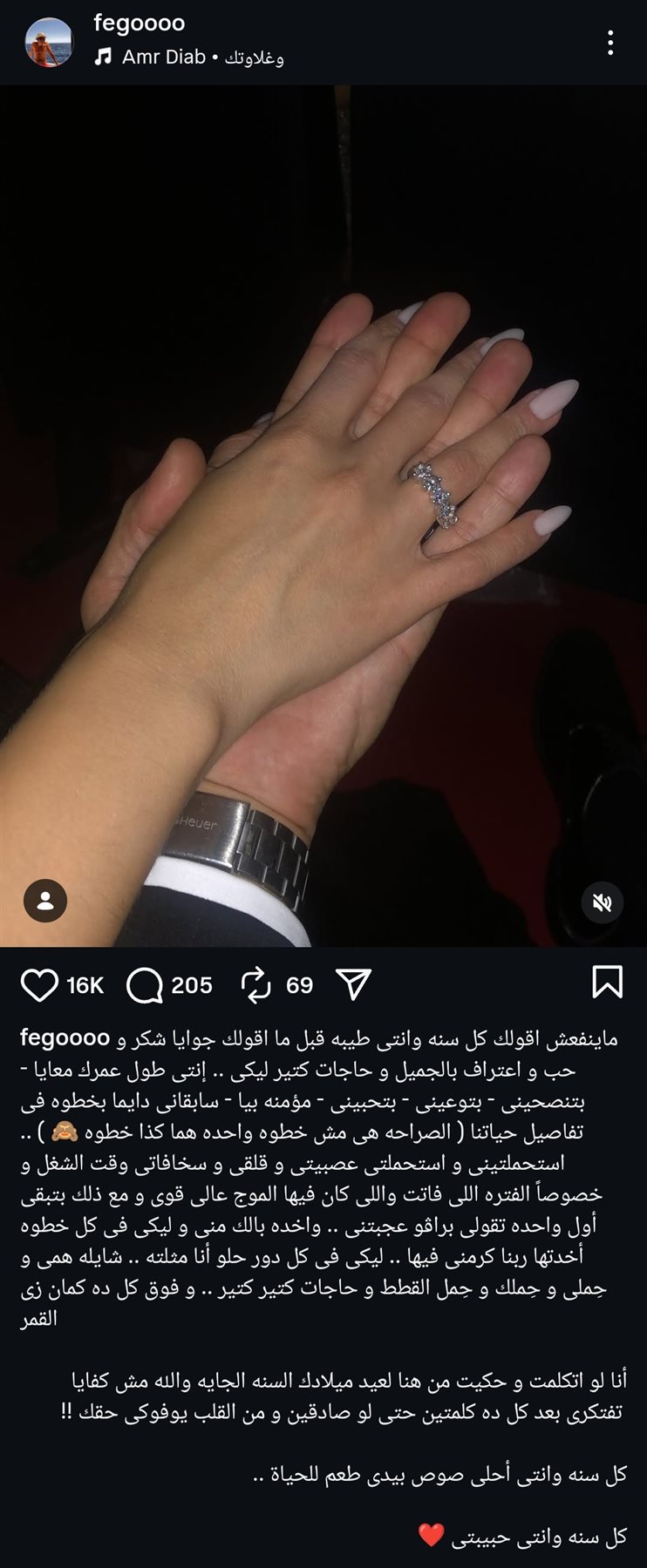 واستكمل فراج حديثه في الجزء الثاني من الرسالة، كاشفًا عن حجم الامتنان الذي يكنّه لزوجته ودورها الكبير في حياته: «و ليكى فى كل خطوه أخدتها ربنا كرمنى فيها ... ليكي في كل دور حلو أنا مثلته .. شایله همی و حملی و حملك و حمل القطط و حاجات كتير كتير .. و فوق كل ده كمان زى القمر أنا لو اتكلمت و حكيت من هنا لعيد ميلادك السنه الجايه والله مش كفايا تفتكرى بعد كل ده كلمتين حتى لو صادقين و من القلب يوفوكي حقك !! كل سنه وانتى أحلى صوص بيدى طعم للحياة ...كل سنه وانتى حبيبتي»، الرسالة كشفت جانبًا إنسانيًا دافئًا من شخصية محمد فراج، بعيدًا عن الأدوار المركبة التي اشتهر بها على الشاشة، وأكدت مدى التفاهم والانسجام بينه وبين بسنت شوقي، خاصة في ظل الضغوط المهنية التي يواجهها النجوم باستمرار.