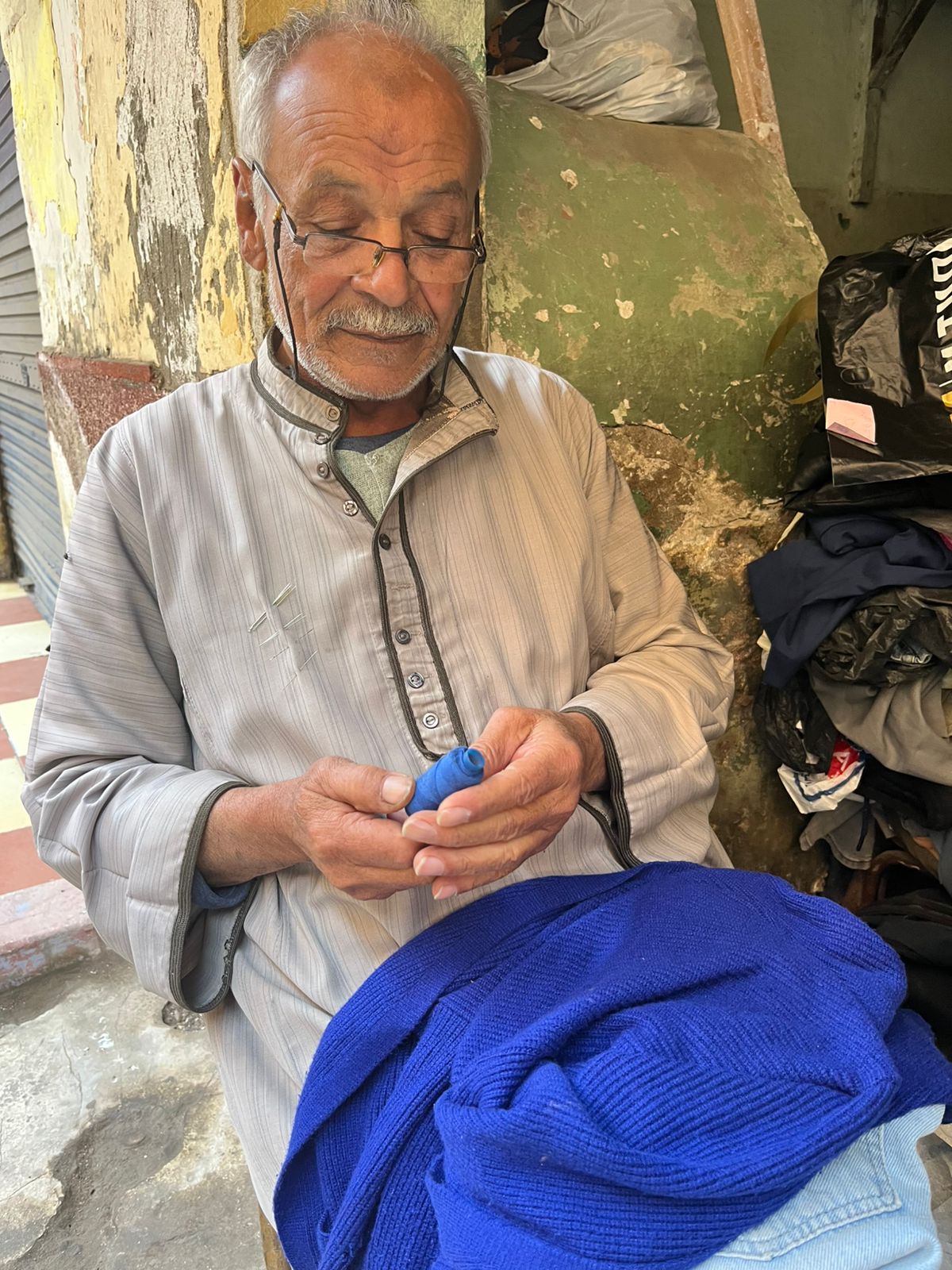 مهندسو الرفة .. حكاية أيادي عم عبد الحميد في إعادة تطريز الملابس القديمة