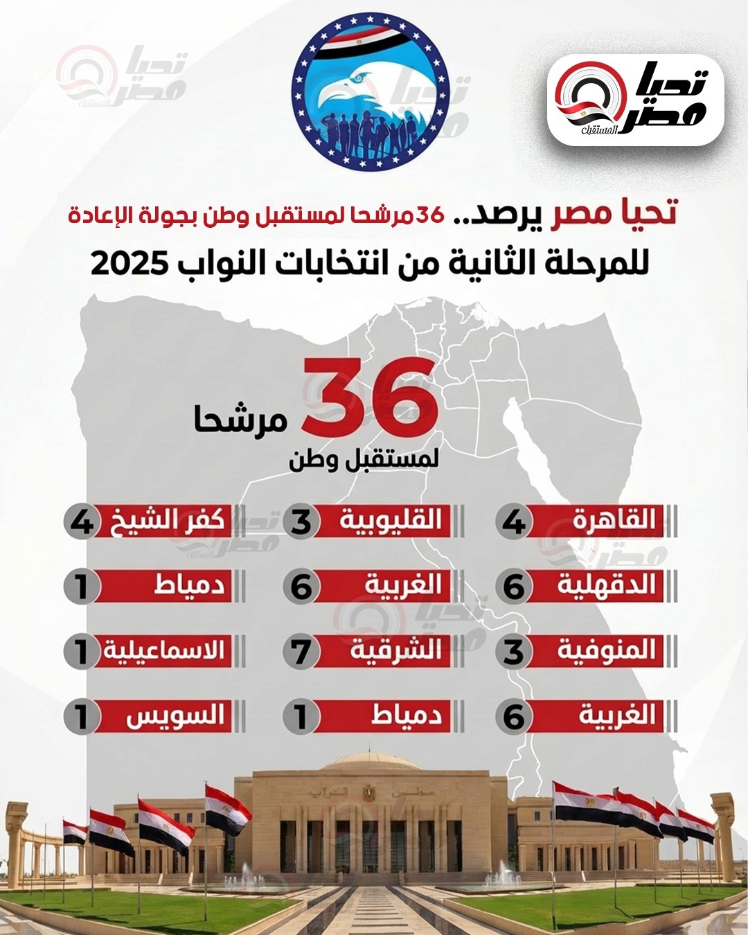 تحيا مصر يرصد.. 36 مرشحًا لحزب مستقبل وطن في جولة الإعادة للمرحلة الثانية من انتخابات مجلس النواب 2025