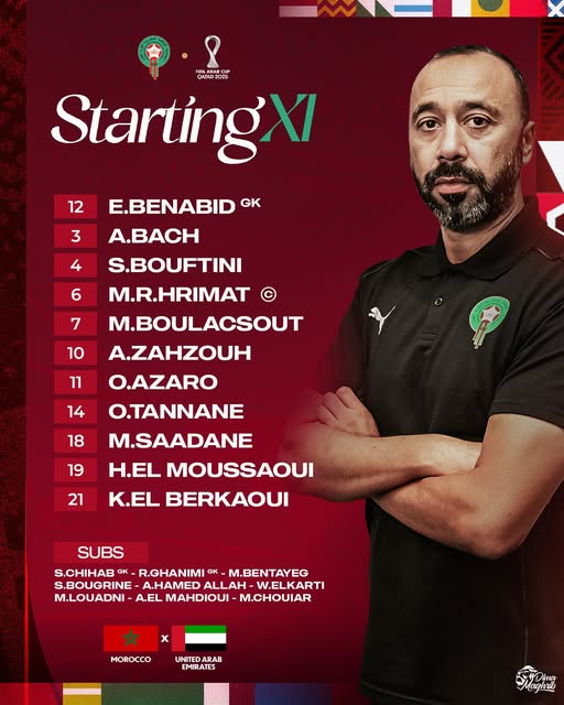 يستمر البحث عن التشكيل الرسمي لمنتخب المغرب أمام منتخب الإمارات في نصف نهائي كأس العرب 2025، وأعلن طارق السكتيوي، المدير الفني لمنتخب المغرب، تشكيل المغرب الذي سيخوض به مواجهة قوية أمام منتخب الإمارات، ضمن منافسات الدور نصف النهائي من بطولة كأس العرب 2025، المقامة حاليًا على الأراضي القطرية، في لقاء مرتقب يحمل طابعًا تنافسيًا كبيرًا بين المنتخبين، ويستعرض تحيا مصر التفاصيل.
