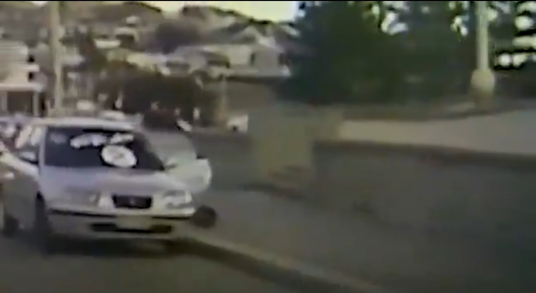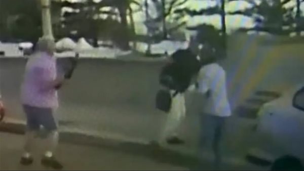وظهر رجلاً يرتدي قميصاً أرجوانياً وهو يتصارع مع المهاجم أثناء خروجه من سيارته في شارع كامبل باريد في بوندي. وتظهر امرأة وهي تركض باتجاه مكان الحادث.