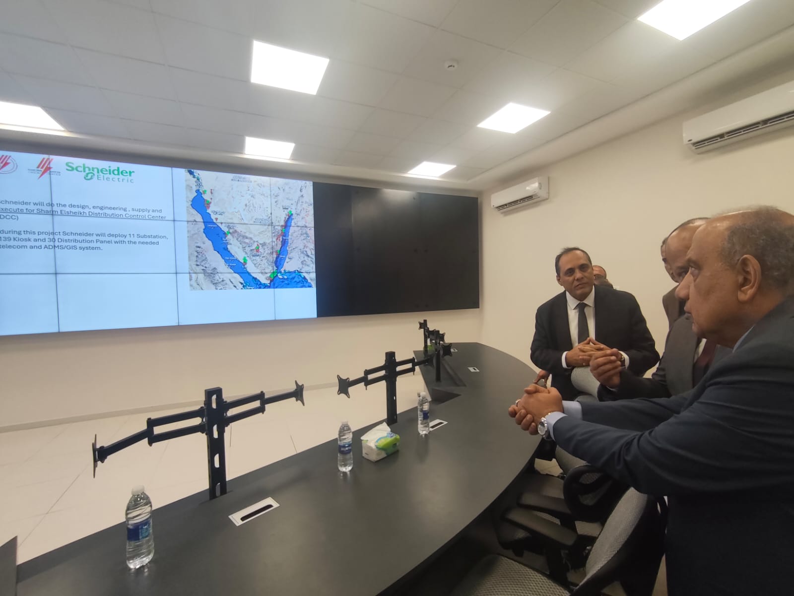 استمع الدكتور محمود عصمت إلى شرح تفصيلي من المهندس سامى أبو وردة رئيس شركة القناة لتوزيع الكهرباء، حول خطة العمل لتأمين التغذية والارتقاء بجودة الخدمات المقدمة فى نطاق عمل محافظة جنوب سيناء، سيما مدينة شرم الشيخ، وكذلك توفير التغذية الكهربائية اللازمة لمشروعات التنمية السياحية، وكذلك أهمية مركز التحكم الذى يربط منظومة توزيع الكهرباء فى جنوب سيناء، وإعداد الكوادر البشرية المؤهلة للاستفادة من التكنولوجيا الحديثة وانعكاس ذلك على جودة واستقرار واستمرارية التيار الكهربائي ومتابعة الأعطال والتصدى المسبق للعطل المحتمل ومتابعة الشبكة، وناقش الدكتور عصمت القائمين على العمل فى إجراءات السلامة والصحة المهنية وخطط التأمين والطوارئ وكذلك معدلات الطاقة المباعة والمشتراة وخفض الفقد ومعدلات التحصيل وغيرها من مجريات العمل، ودور مركز خدمة المستثمرين فى تسهيل التعامل مع مستثمري المدينة والتأكيد على العمالة المدربة وذات الكفاءة العالية والمجهزة للتعامل والرد علي كافة الاستفسارات وتنفيذ المهام المطلوبة طبقا للوائح المنظمة.