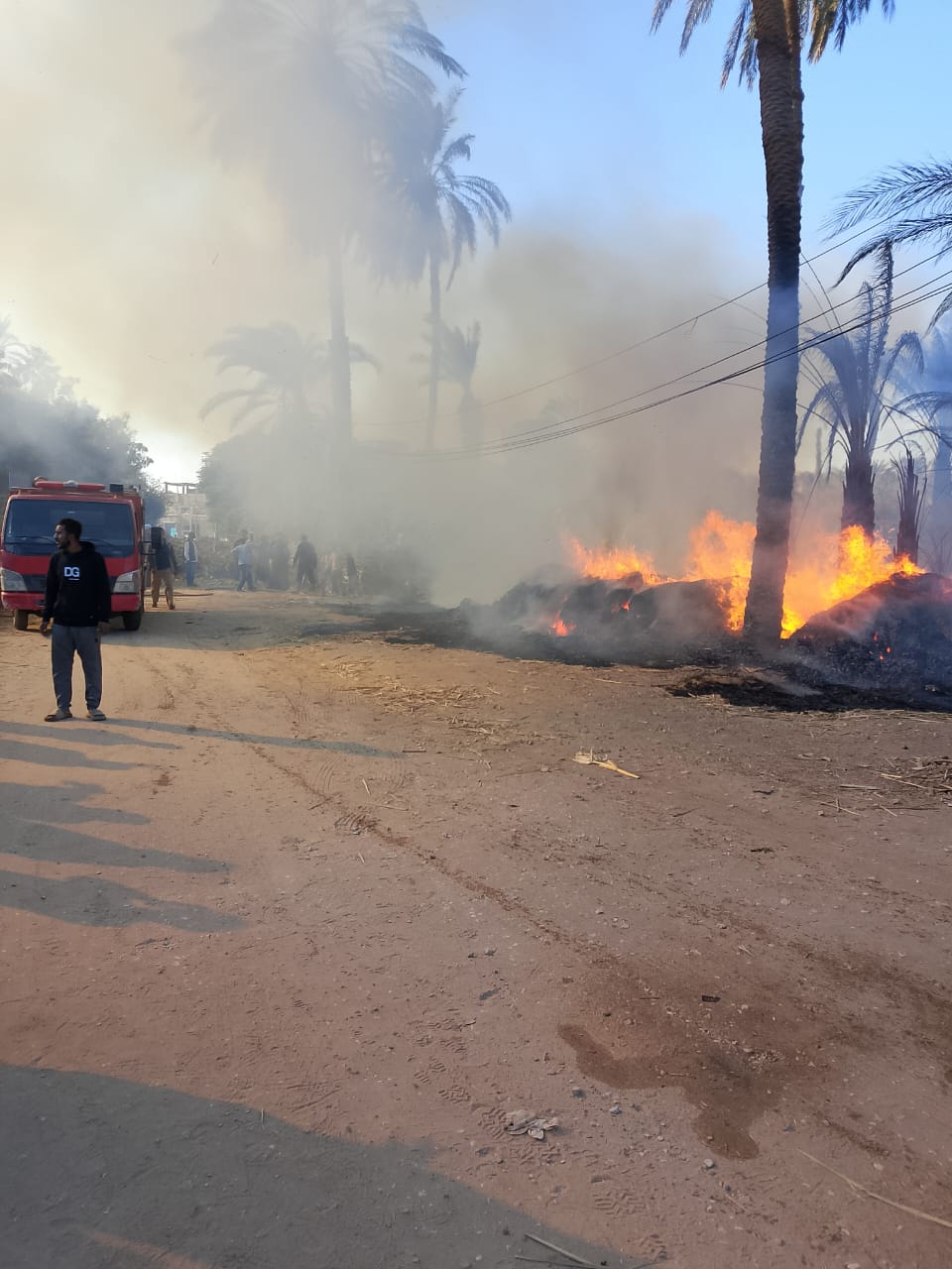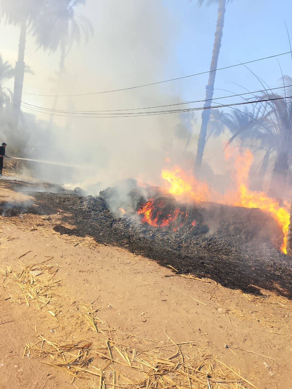 البوص بقي رماد.. حريق با أشجار النخيل والبوص بسوهاج