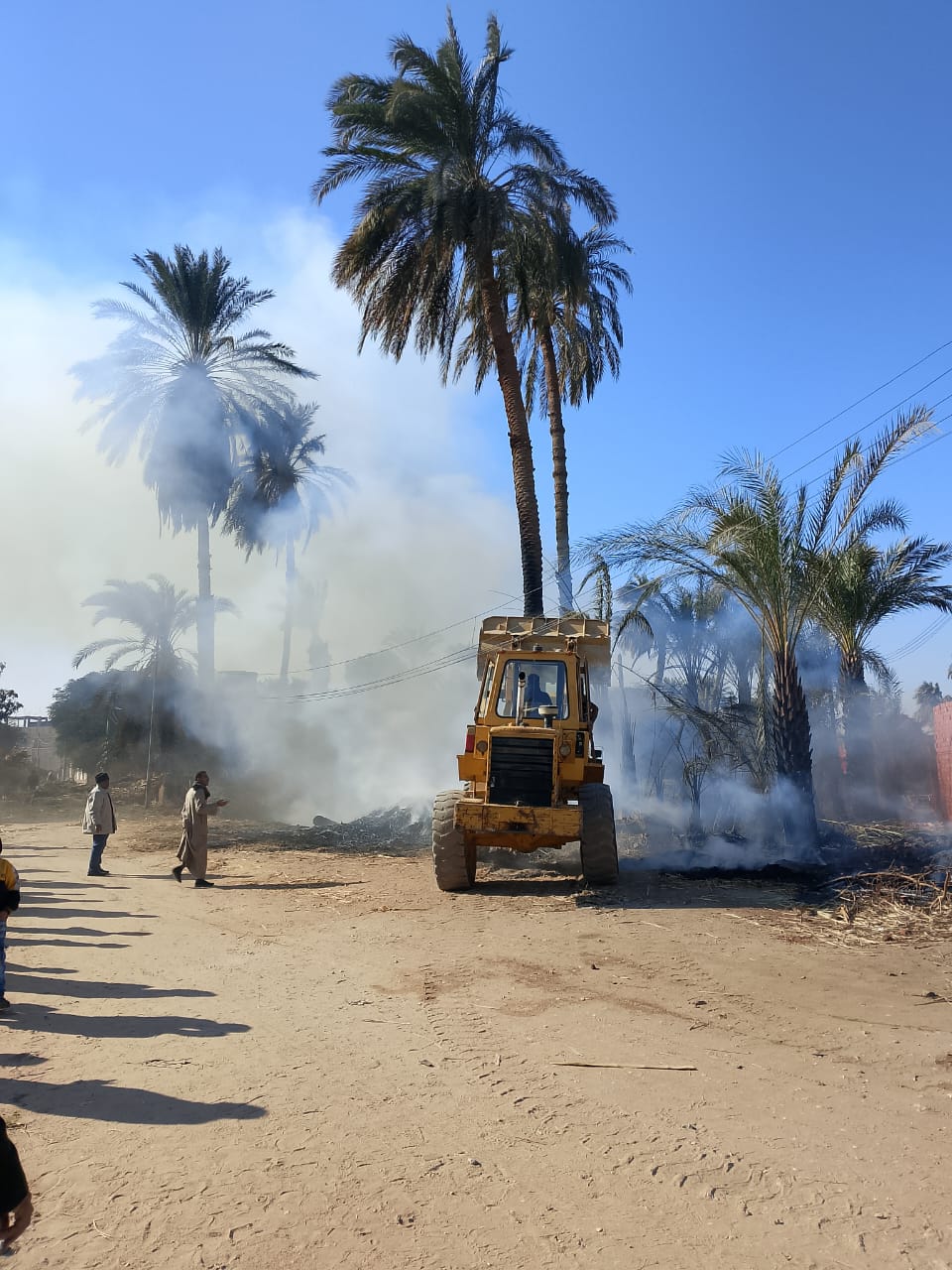 نتج عن الحريق احتراق أشجار النخيل وبوص بجاور النخيل دون وقوع إصابات في الأرواح