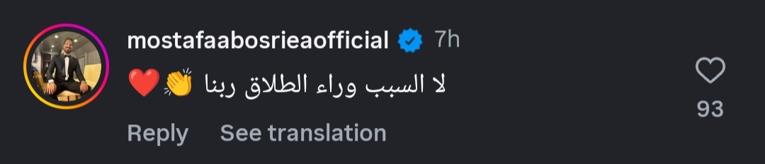 وسط هذه الأجواء المشحونة، خرج مصطفى أبو سريع عن صمته ليضع حدًا لما يتم تداوله وكشف حقيقة طلاق زوجته بسبب فنانة أخرى، حيث رد عبر حسابه على موقع «إنستجرام» على الأنباء التي ربطت الطلاق بتلك الفنانة الشابة، قائلًا كما رصد موقع تحيا مصر: «لا الطلاق حصل بسبب ربنا مش بسبب حد»، في نفي قاطع يؤكد أن الانفصال لا علاقة له بأي شخص آخر.