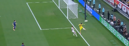بعد العودة لتقنية الفيديو يتم إلغاء الهدف الأول بسبب تجاوز الكرة لخط المرمى
