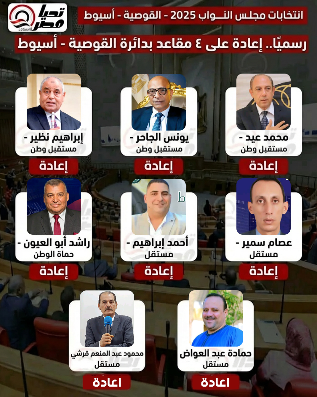 رسميًا.. إعادة على 4 مقاعد بدائرة القوصية بمحافظة أسيوط في انتخابات مجلس النواب