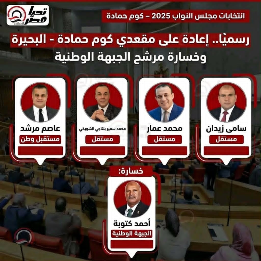 أعلنت الهيئة الوطنية للانتخابات عن نتيجة انتخابات دائرة كوم حمادة والتي تأتي ضمن الدوائر الملغاة الـ 30 بحكم المحكمة الإدارية العليا.
