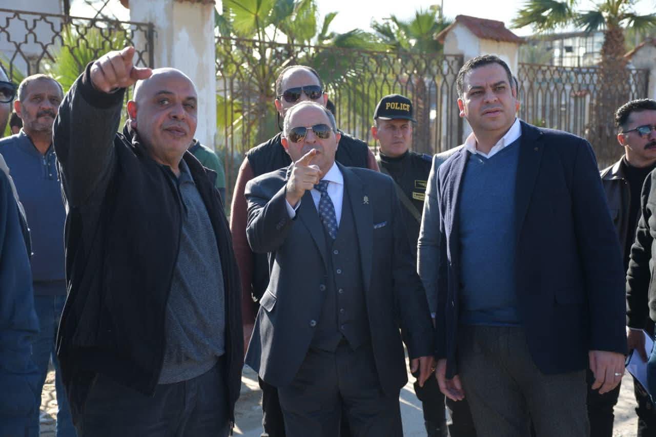 رافقه خلال الجولة الدكتور عمرو عثمان نائب المحافظ، و النائب أحمد جوهر عضو مجلس الشيوخ، والمهندسة زينب الجباس مدير إدارة المشروعات،والمهندس وليد الدعدع رئيس حي العرب ،ومحمد فواز رئيس حي المناخ والجهات التنفيذية المختصة.