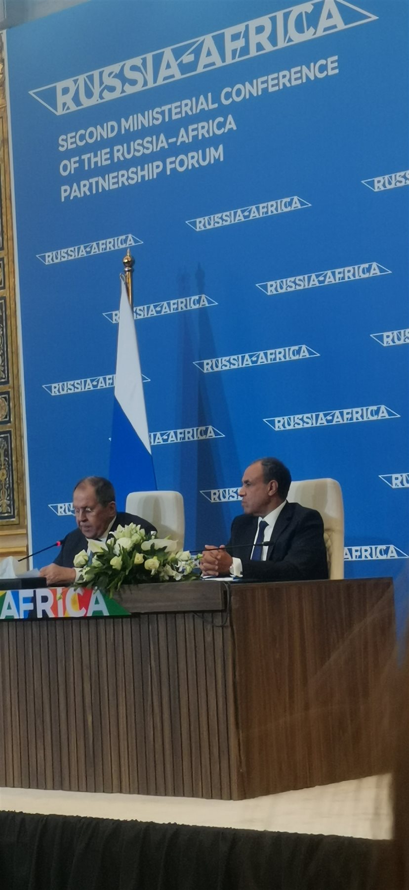 وقال الوزير لافروف:"ركزنا على مجال التعاون والطاقة والاستثمار واتفقنا على تطوير هذا التعاون… كما اتفقنا بذل الجهود زيادة التبادل التجاري… ونعمل على تعزيز التعاون الروسي الأفريقي".