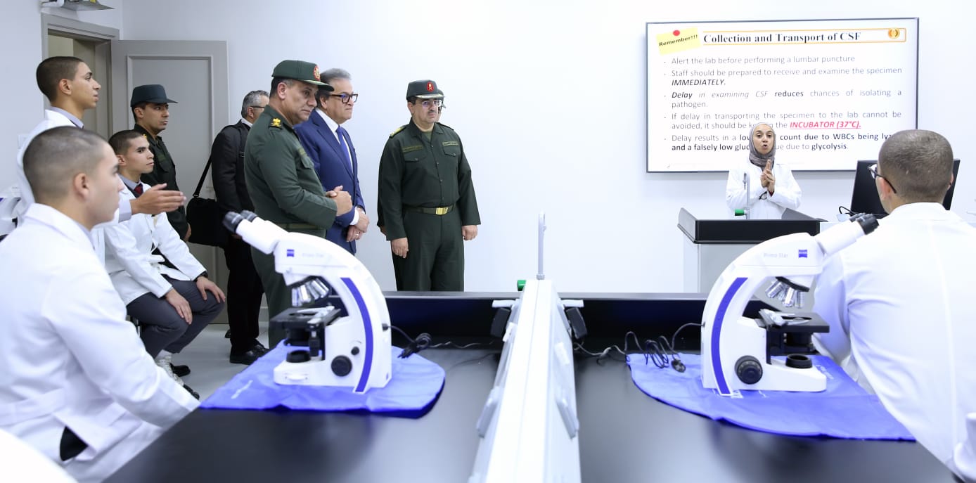 تنفيذاً لتوجيهات القيادة السياسية بتعظيم الإستفادة من كافة القدرات والإمكانيات المتاحة للإرتقاء بمنظومة الرعاية الصحية ، وفى إطار حرص القوات المسلحة على المساهمة فى التطوير المستمر للقطاع الطبى إستقبلت كلية الطب بالقوات المسلحة الدكتور خالد عبد الغفار نائب رئيس مجلس الوزراء للتنمية البشرية وزير الصحة والسكان يرافقه الفريق أشرف سالم زاهر مدير الأكاديمية العسكرية المصرية ، وذلك للإطلاع على منظومة التطوير والتحديث والرؤية المتكاملة التى تشهدها الكلية خلال الفترة الماضية والتى كان آخرها إلتحاق الدفعة (1) إناث بالصفة العسكرية والدفعة رقم (1) (ذكور – إناث) بالصفة المدنية بالإضافة إلى التطوير الشامل للقاعات والمعامل الدراسية وفندق إقامة الطلبة والملاعب الرياضية والنقطة الطبية بما يعكس الحرص على توفير كافة مقومات التميز وتطوير القدرات للكوادر البشرية وتوفير المناخ العلمى المناسب للإرتقاء بجودة العملية التعليمية على المستوى الطبى .