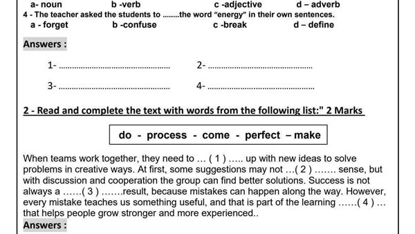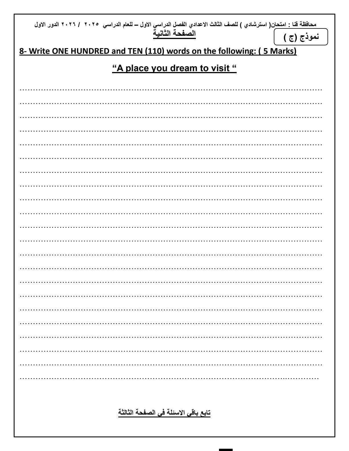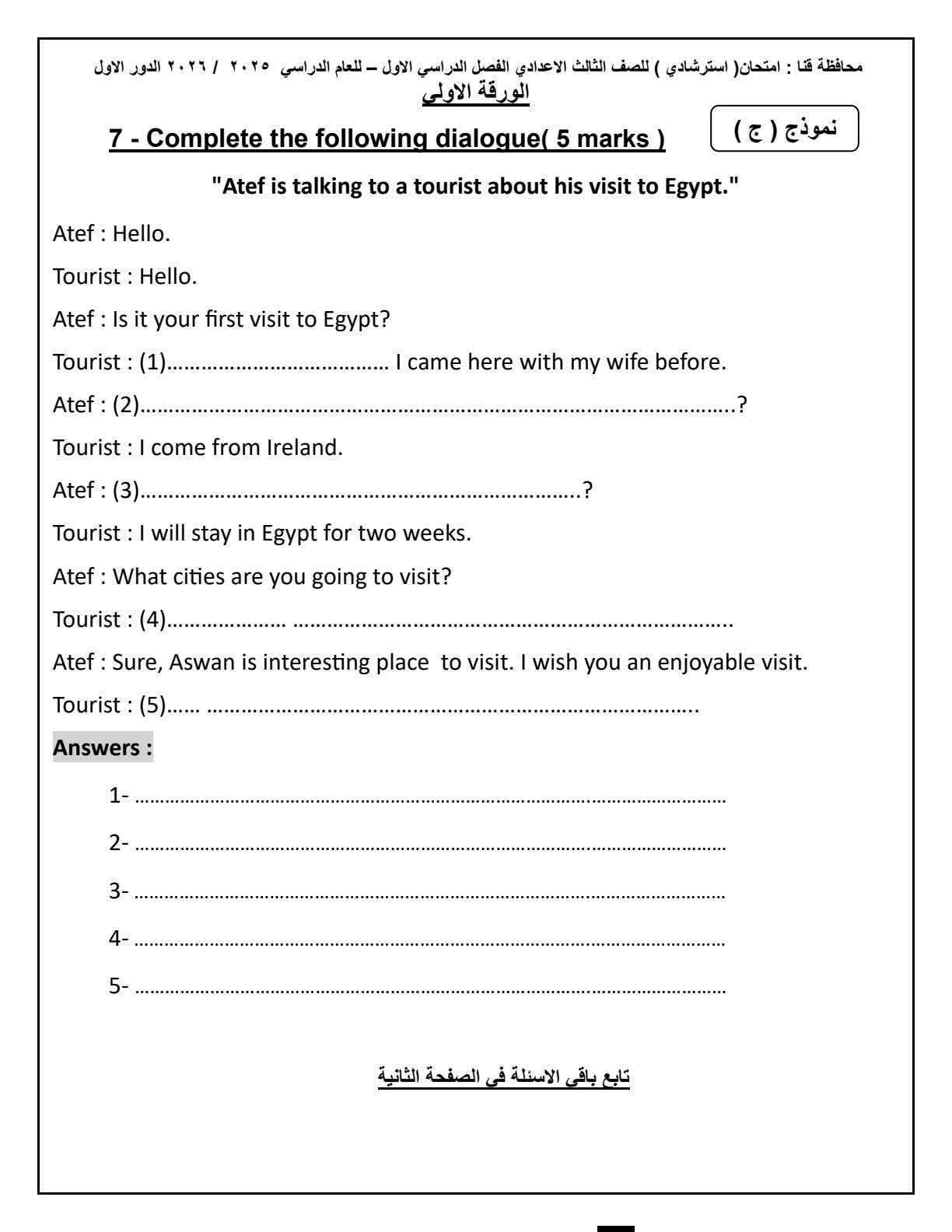 هذا النموذج يُعد أداة مفيدة للمراجعة النهائية قبل الامتحان، ويتيح للطلاب التدرب على الإجابة بطريقة صحيحة ومنظمة، مما يزيد من ثقتهم أثناء الامتحان.