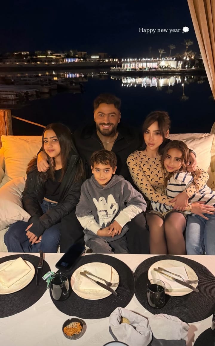 بسمة بوسيل تحتفل بالعام الجديد رفقة طليقها تامر حسني وأبناءهم| صور