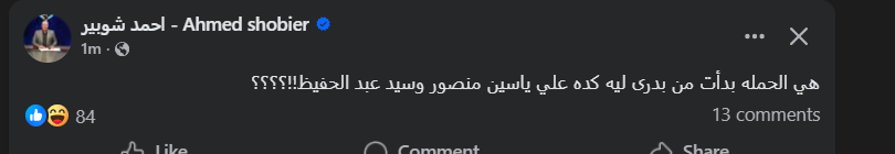 تحيا مصر، وكتب أحمد شوبير عبر حسابه الرسمي"فيس بوك": هي الحمله بدأت من بدرى ليه كده علي ياسين منصور، وسيد عبد الحفيظ".