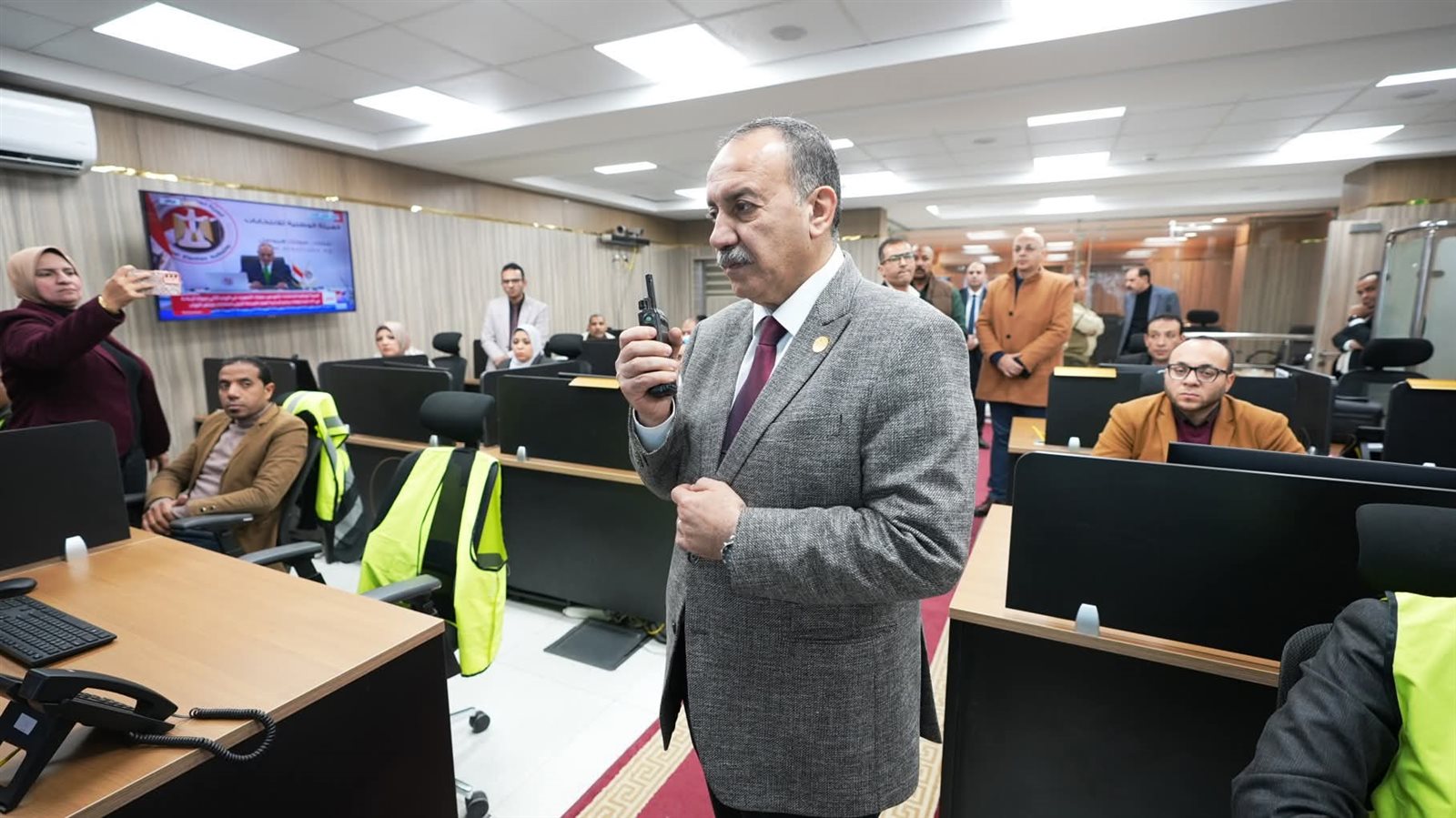 حيث ترأس محافظ أسيوط أعمال غرفة العمليات المركزية، بحضور الأستاذ خالد عبدالرؤوف السكرتير العام المساعد، واللواء أحمد حسني مستشار المحافظ إلى جانب عدد من القيادات التنفيذية والأمنية، ووكلاء الوزارات، ورؤساء الهيئات، وممثلي شركات المرافق والخدمات الحيوية، حيث جرى استعراض الموقف الانتخابي أولًا بأول على مستوى المراكز والمدن، والوقوف على انتظام العمل داخل اللجان.