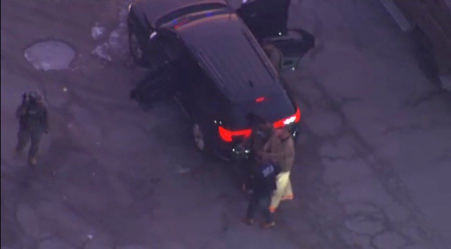 شوهد لاحقاً وهو يخرج من المروحية، ويتم نقله إلى مركبة مدرعة