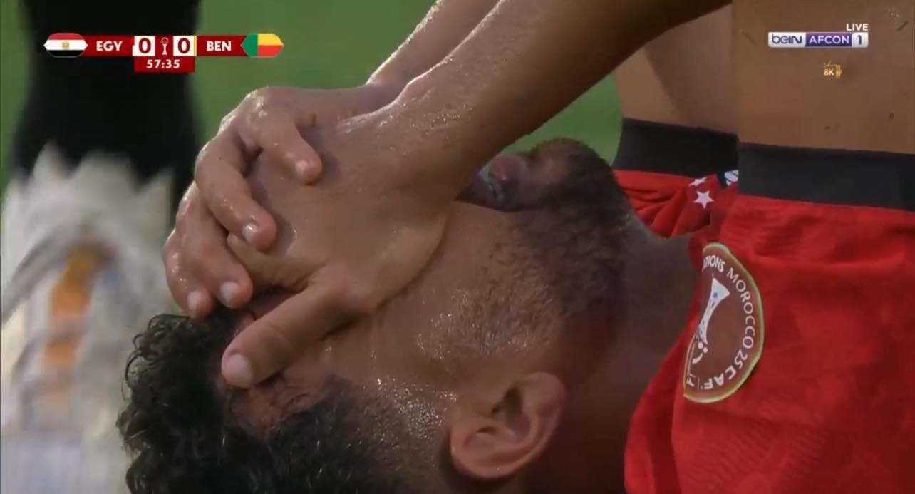 وتدخل الجهاز الطبي للمنتخب من أجل فحص اللاعب وتقديم الإسعافات اللازمة، إلا أن الإصابة حالت دون استكماله المباراة. وعلى الفور، قرر المدير الفني إجراء تغيير اضطراري بخروج محمود حسن تريزيجيه ونزول إمام عاشور بدلًا منه، في محاولة للحفاظ على التوازن الفني داخل الملعب، بينما استمرت المباراة في ظل ترقب جماهيري كبير عبر بث مباشر مصر وبنين.