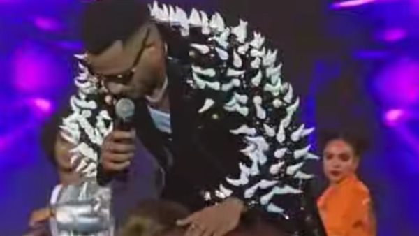 باس راسها وطبطب عليها.. موقف إنساني لـ محمد رمضان مع مساعدته بعد تغييرها حذائه على المسرح