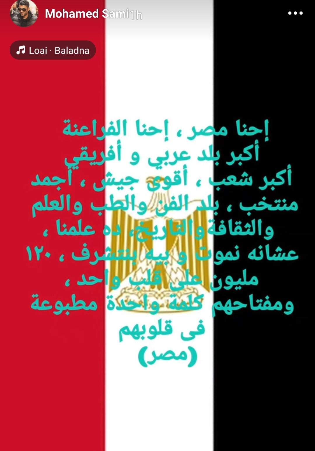 وتوقف سامي عند رمزية التاريخ المصري، معتبرًا أن الفراعنة لم يكونوا مجرد صفحة من الماضي، بل جذور راسخة تشكل وعي الحاضر، وأضاف أن مصر تظل أكبر بلد عربي وأفريقي، ليس بالمساحة فقط، وإنما بقيمة الإنسان المصري، وبقوة جيشه، وبحضور فنه وطبّه وعلمه وثقافته، كلمات محمد سامي بدت وكأنها بيان وجداني يوازي الاحتفال الرياضي، ويعيد التأكيد على أن الانتصار الحقيقي هو بقاء الشعور الوطني حيًا في لحظات الفرح.