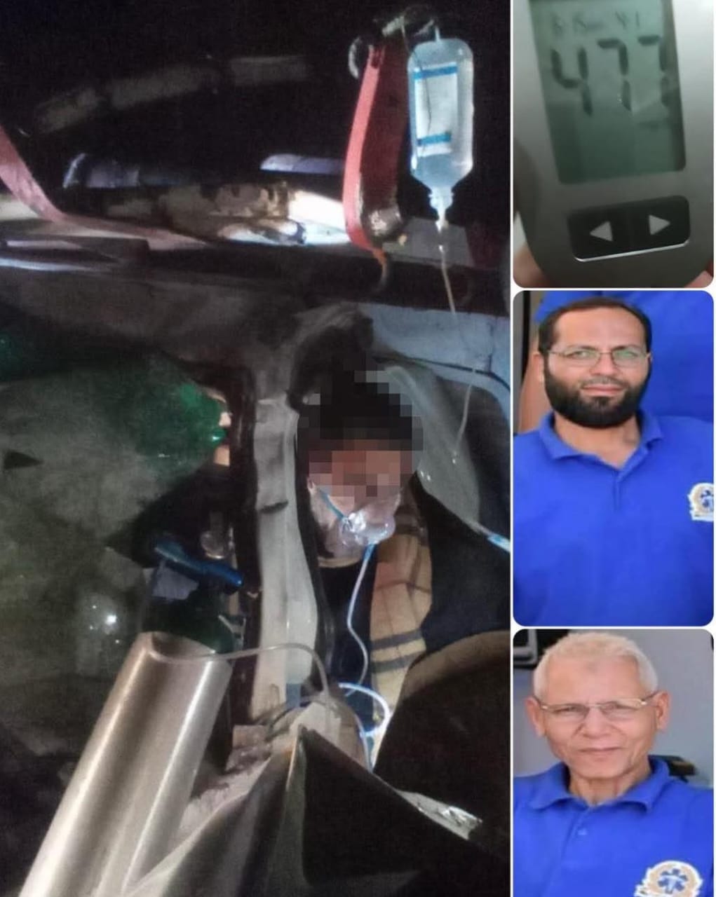 لكن التحدي الأكبر كان "العدو الخفي"؛ فالمصاب مريض سكري، ويتلقى علاج الأنسولين، وقد سجلت أجهزة القياس رقمًا مرتفعًا بلغ (477)، ما استدعى تدخلًا إسعافيًا فوريًا ودقيقًا للحفاظ على حياته.