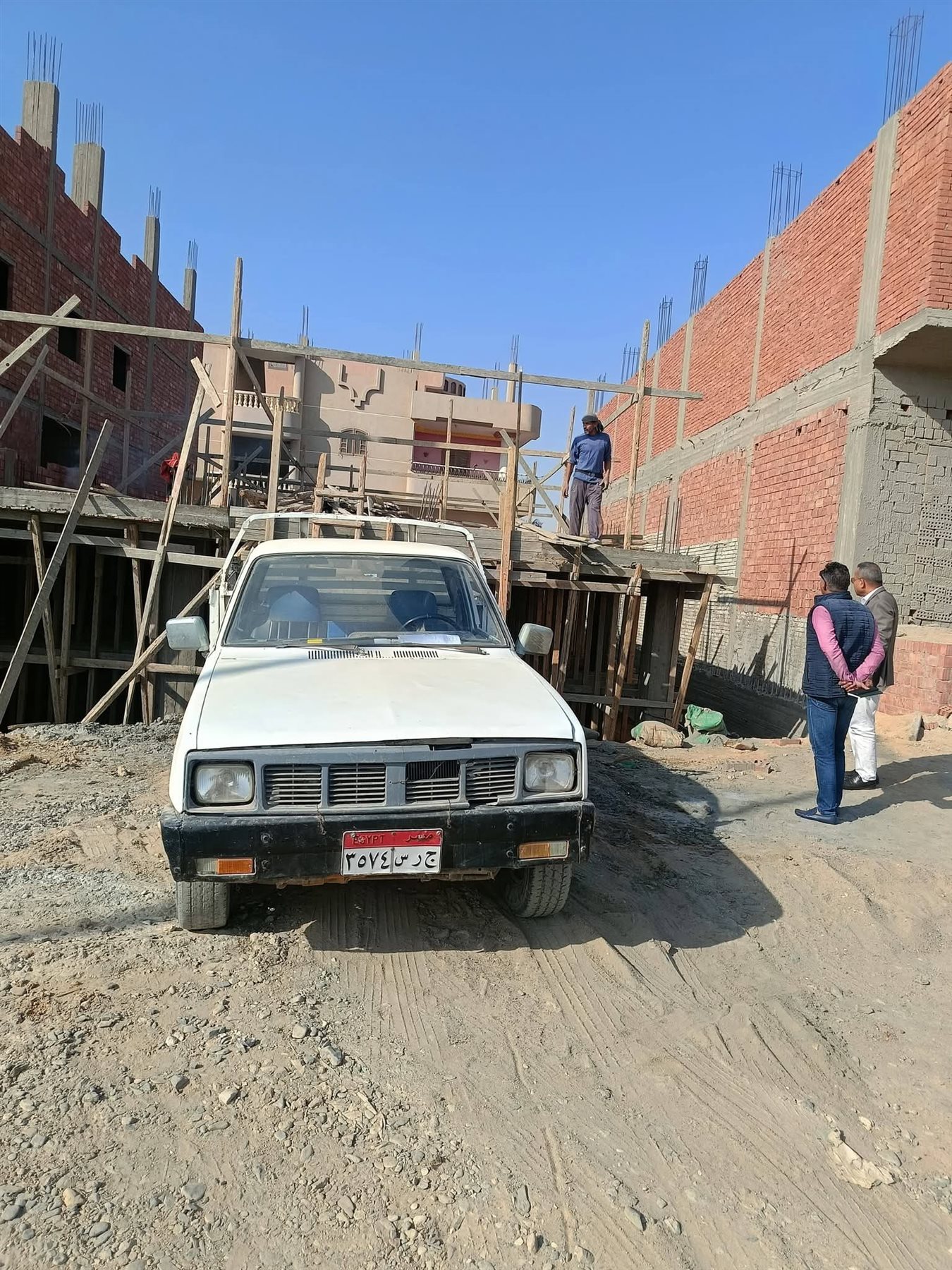 رصد أعمال تسليح سقف بأحد المباني بمنطقة 2 ب.