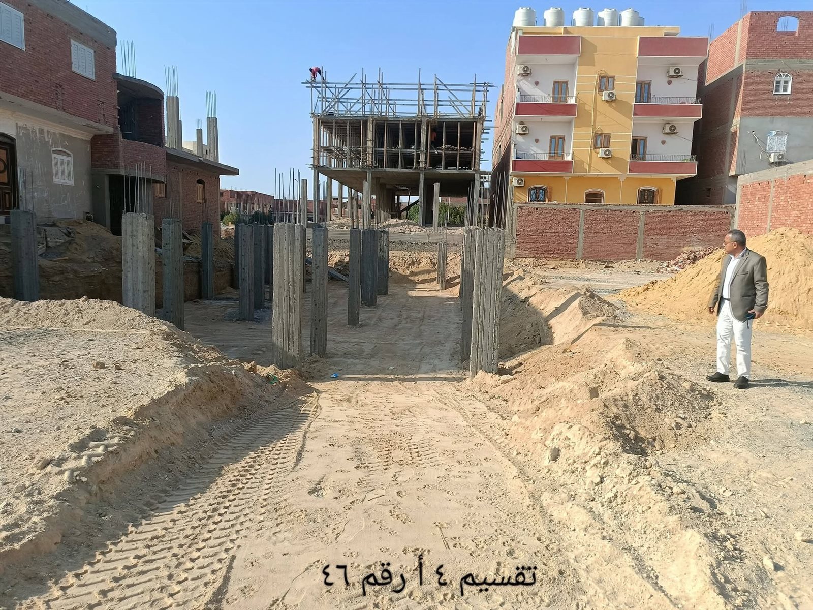 رصد إنشاء أعمدة خرسانية بقطعة أرض بتقسيم 4 أ.