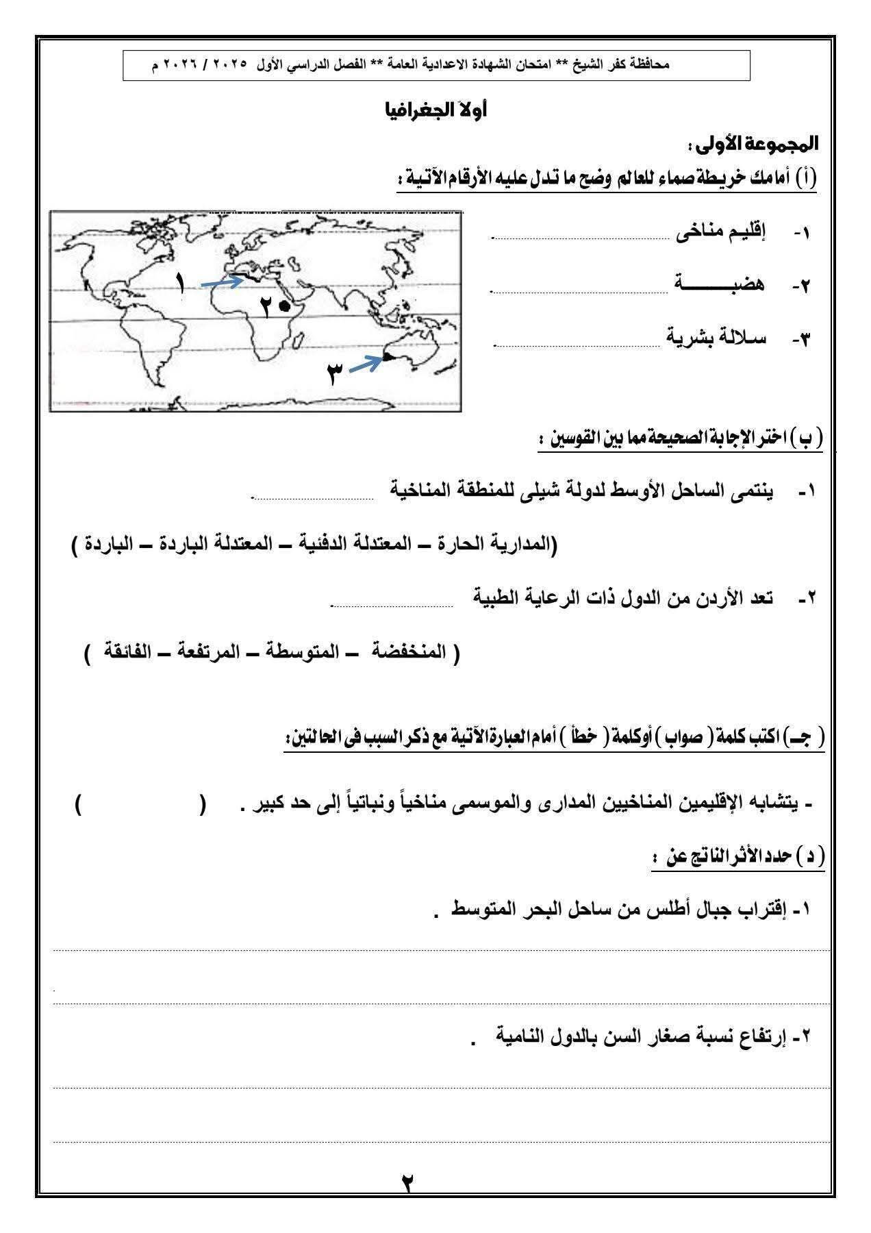 نموذج امتحان الدراسات الاجتماعية للصف الثالث الإعدادي 2026