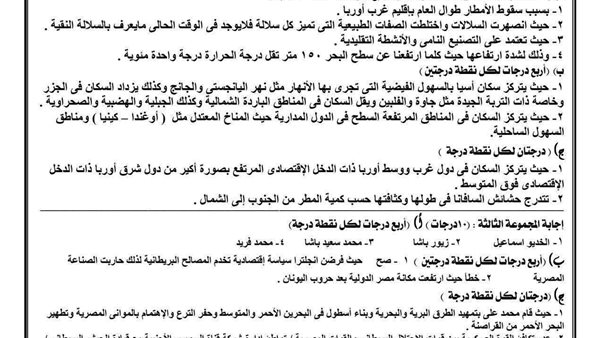 إجابة نموذج امتحان الدراسات الاجتماعية للصف الثالث الإعدادي 2026