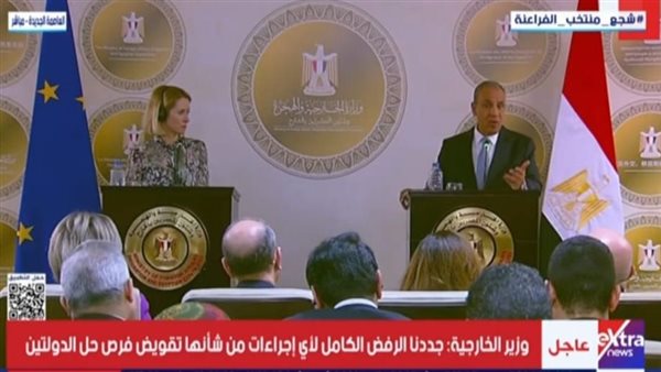 وشدد على( رفض) مصر القاطع لأي إجراءات تهدف إلى تكريس الانفصال بين قطاع غزة والضفة الغربية، مؤكدًا وجود توافق مصري–أوروبي كامل على مبدأ الوحدة العضوية للأراضي الفلسطينية.