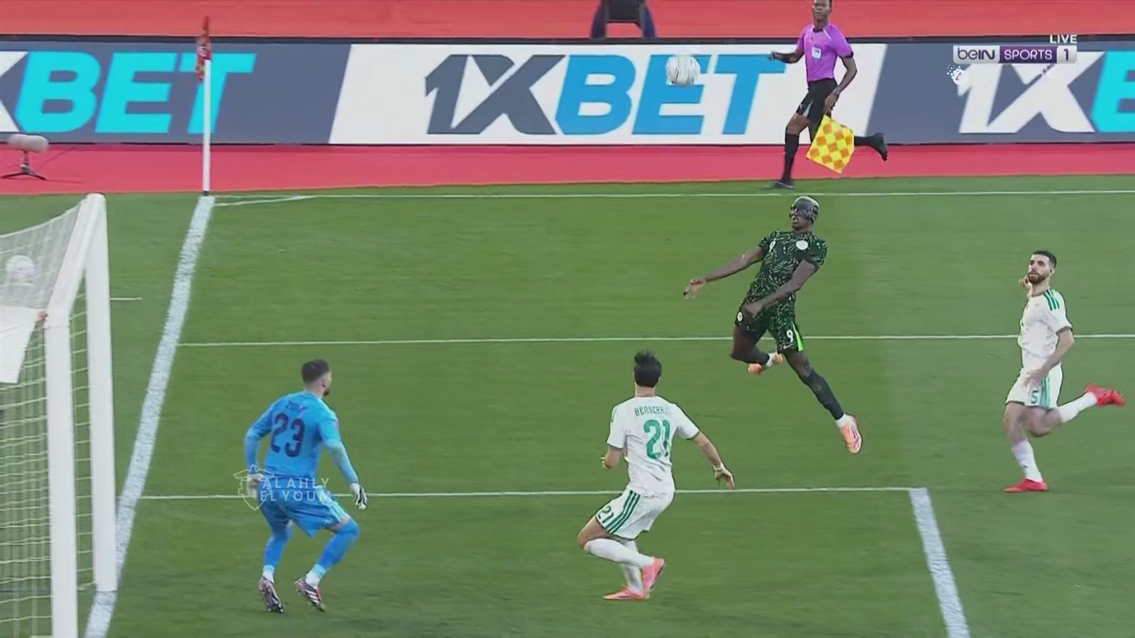 الكرة وجدت رأس فيكتور أوسيمين الذي ارتقى فوق المدافعين وحولها برأسية قوية سكنت الشباك في الزاوية اليمنى للمرمى، معلنة عن الهدف الأول لنيجيريا وسط فرحة عارمة من الجماهير.