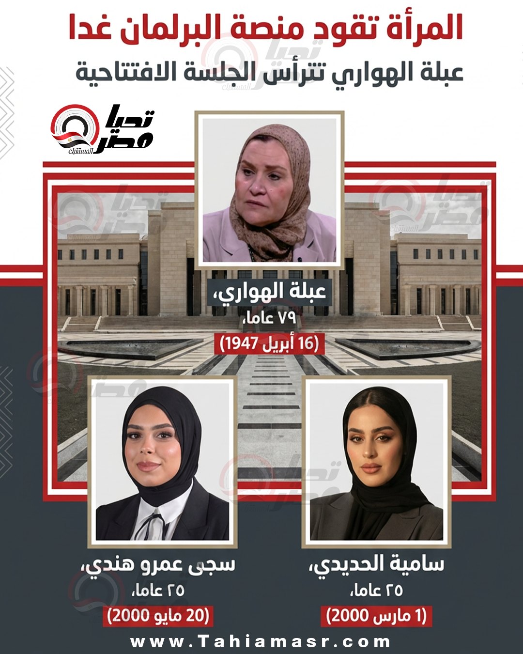 المرأة تقود منصة البرلمان غدا.. عبلة الهواري تترأس الجلسة الافتتاحيبة ويعاونها سجى هندي و سامية الحديدي