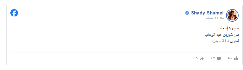 منشور شادي شامل يشعل القلق حول حالة شريين عبد الوهاب