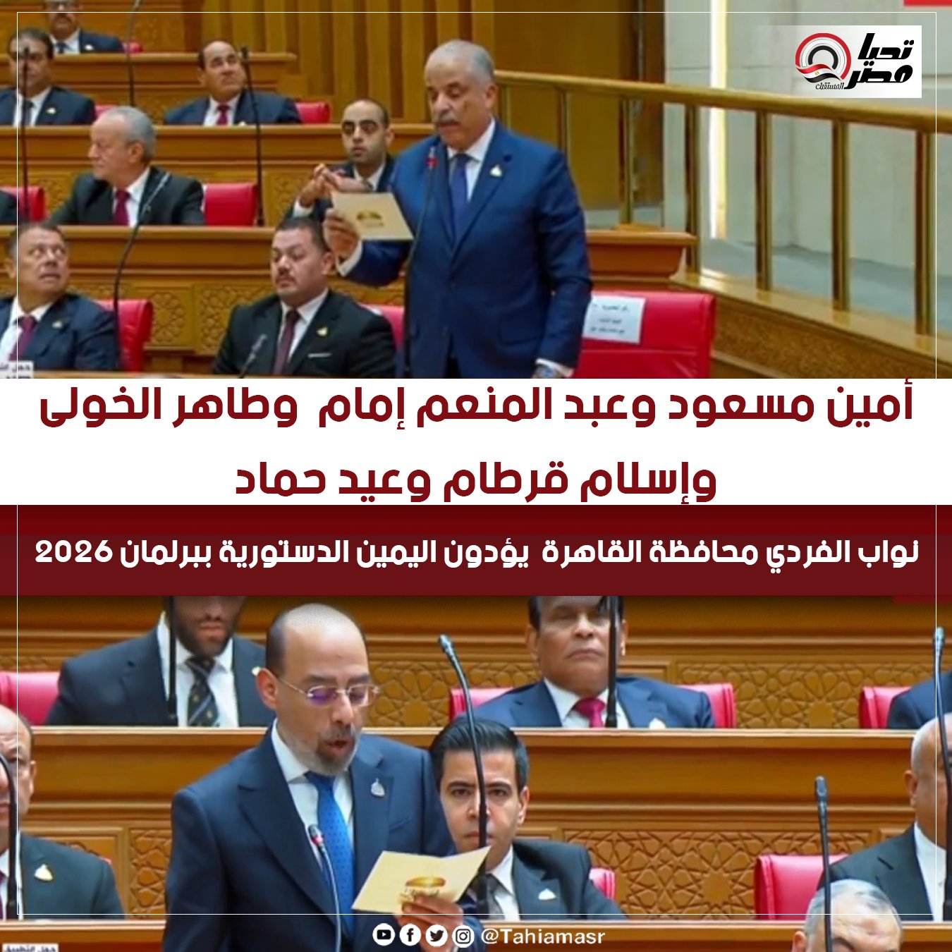 أمين مسعود وعبد المنعم إمام وطاهر الخولى وإسلام قرطام وعيد حماد.. نواب فردي محافظة القاهرة يؤدون اليمين الدستورية ببرلمان 2026 (صور)