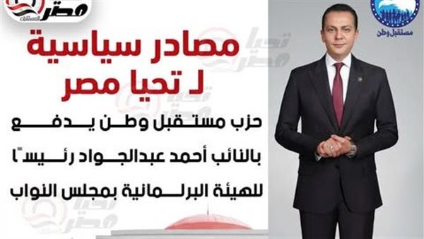 مصادر سياسية لـ تحيا مصر: حزب مستــقبل وطن يــــدفـع بالنائب أحمد عبدالجـواد رئــــيسًا للهيئة البرلــــمانية بمجلس النواب