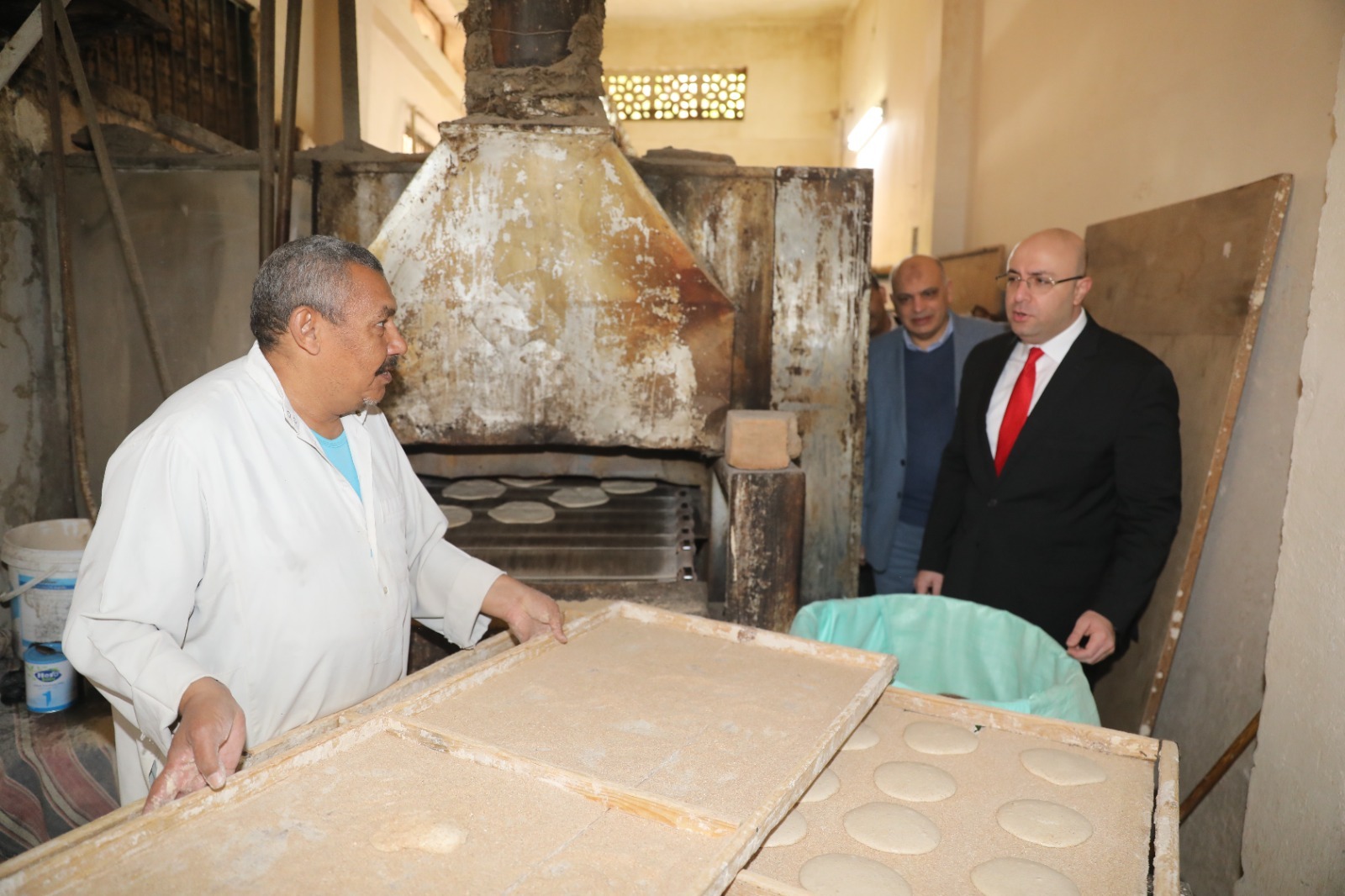 واختتمت الجولة بتفقد بعض المخابز البلدية،حيث تابع المحافظ عملية إنتاج وتوزيع الخبز على المواطنين،والالتزام باشتراطات ضوابط إنتاج رغيف خبز مطابق للمواصفات،موجها بتكثيف حملات الرقابة والتفتيش على المخابز، لضمان تقديم أفضل مستوى من الخدمات للمواطنين، والالتزام بالوزن والمواصفات المقررة للرغيف،ومطابقة حصص الدقيق مع الكميات المنصرفة من الخبز،واتخاذ ما يلزم من إجراءات حيال المخالفين،مع التأكيد على توافر معايير السلامة والصحة المهنية داخل المخابز .